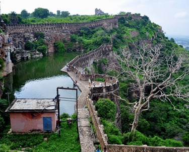 Rani Padmini Palace is a beautiful white structure located beside a peaceful lotus pond. The palace is associated with the legendary queen Rani Padmini and reflects Rajputana elegance. Surrounded by water and scenic views, it is a popular photography spot and an iconic landmark inside Chittorgarh Fort.