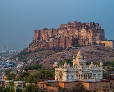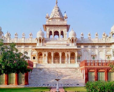 Jaswant Thada is a beautiful white marble cenotaph built in memory of Maharaja Jaswant Singh II. Surrounded by gardens and a peaceful lake, it offers a calm atmosphere for visitors exploring Jodhpur with Nakoda Tours And Travels Agency.
