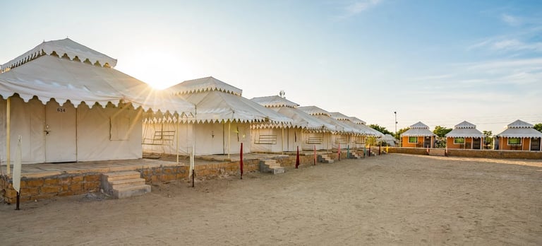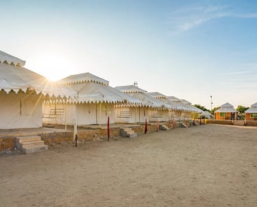 Sam Sand Dunes offer an authentic desert experience with camel rides, jeep safari, golden sunset views, and traditional Rajasthani folk dance performances. The evening cultural program under the stars becomes unforgettable when arranged by Nakoda Tours And Travels Agency, followed by a relaxing desert camp stay.